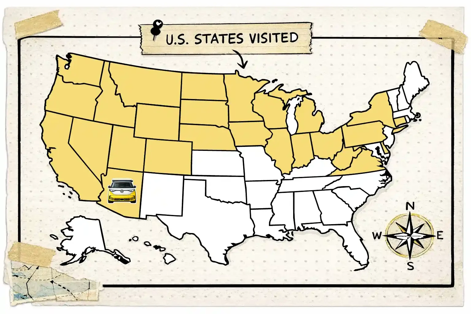 Peace Vans transformed Sun Buzz into a camper built for real travel — thoughtful, functional and ready for everything from scenic overnights to long stretches on the road. This build made the 48-state journey possible.